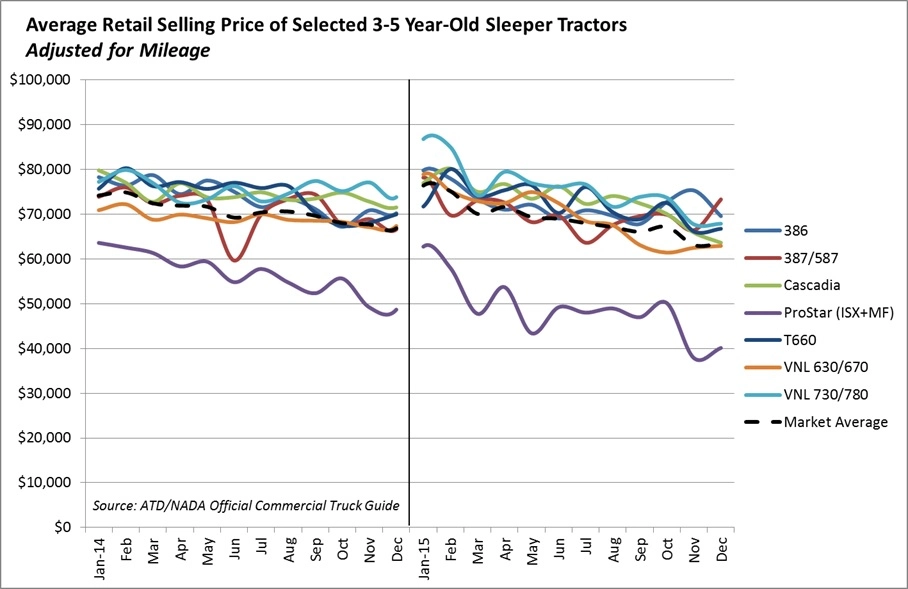 The average mileage of the trucks was up slightly for the month of December, but overall remained low for all of 2015. Furthermore, mileage declined by 8% in 2014.